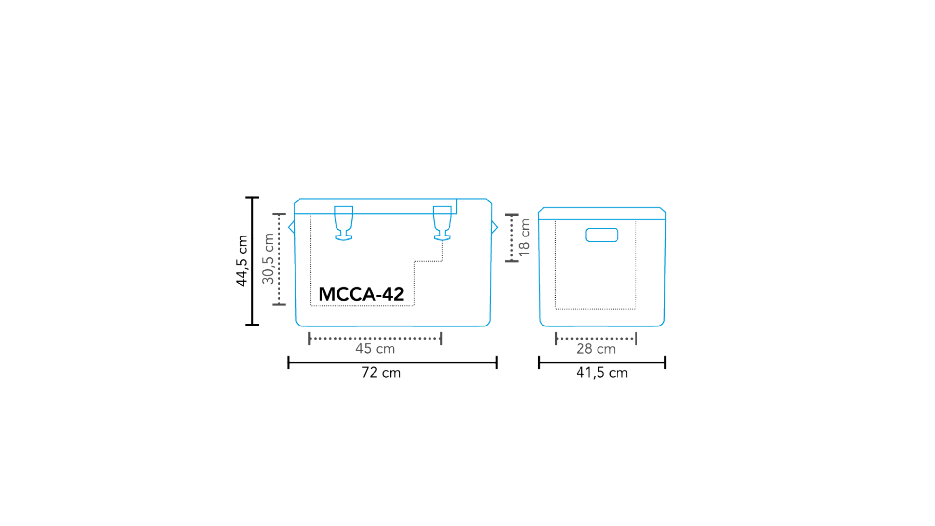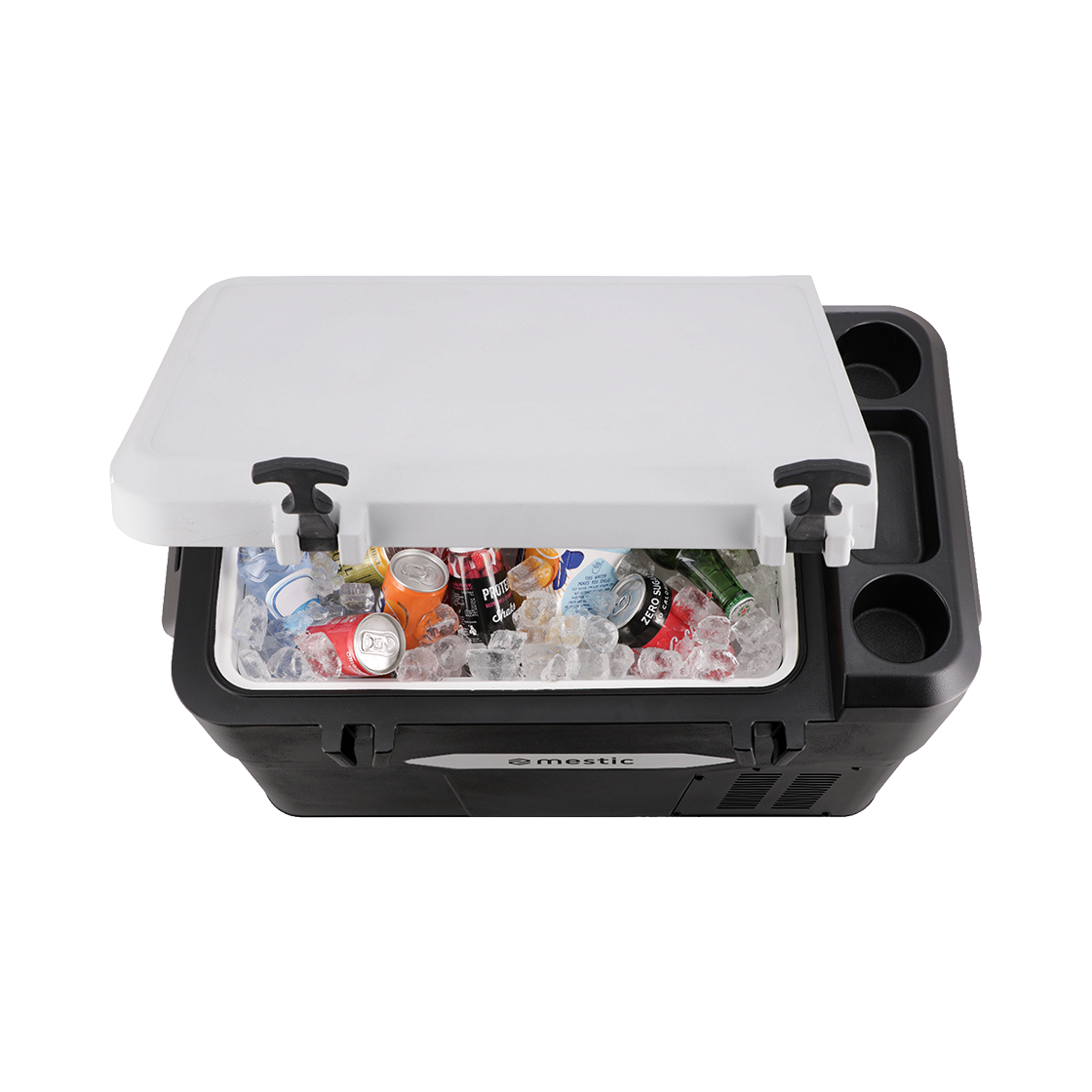 Going wild camping for a night with no mains power nearby? Switch to passive cooling with the Mestic MCCA-42. Thanks to its extra-insulated walls, this compressor cool box keeps your food and drinks cold for a very long time even without power. Fill it with ice or cooling elements, seal it well, and the cool box takes care of the rest. This gives you all the freedom you need to explore. Are you a real adventurer? Due to its robust design, this compressor cool box can take quite a beating. The Mestic MCCA-42 has a capacity of 42 L and is suitable for 2 L bottles. This provides enough space for snacks and drinks for three to four people. Also handy: the cool box has two cup holders at the top.