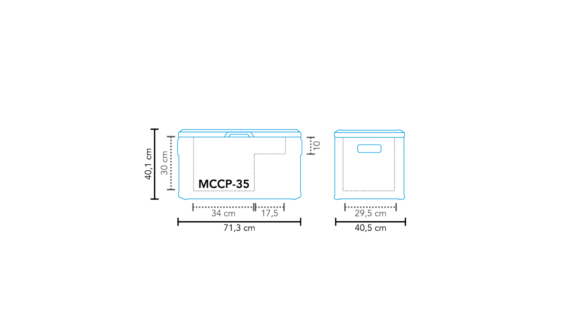 Are you looking for a user-friendly cool box with a powerful compressor cooling system? Then you should opt for the Mestic compressor cool box MCCP-35. This cooler cools and freezes between -18 °C and +20 °C, with a capacity of 35 L. The lid of the cool box can be opened on two sides.