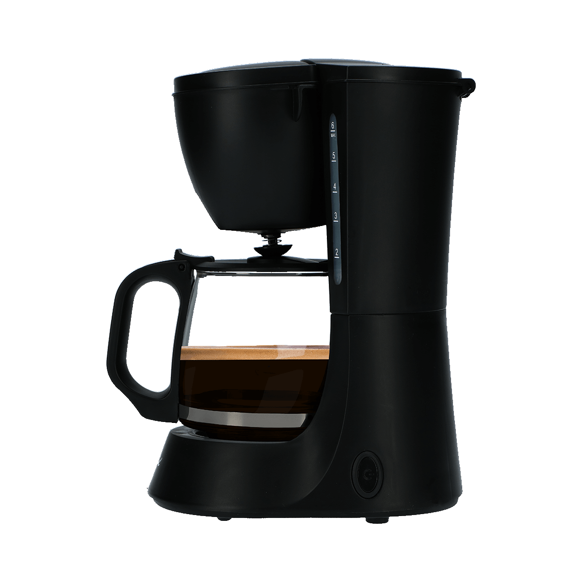 Back to nature does not necessarily mean that you cannot enjoy the aroma of good fresh coffee. Even on the campsite you can make no less than 6 cups of filter coffee at a time with the MK-60 coffee maker. All you have to do is bring filters with you, scoop the ground coffee into the machine and put water in the water tank. The water level indicator shows exactly how many cups of coffee you can make with the amount of water added. The mini coffee machine then does the rest. In the meantime, enjoy chatting with your friends or family until your cup of coffee is ready! This compact coffee maker has a modern look, thanks to the black casing and glass coffee pot.