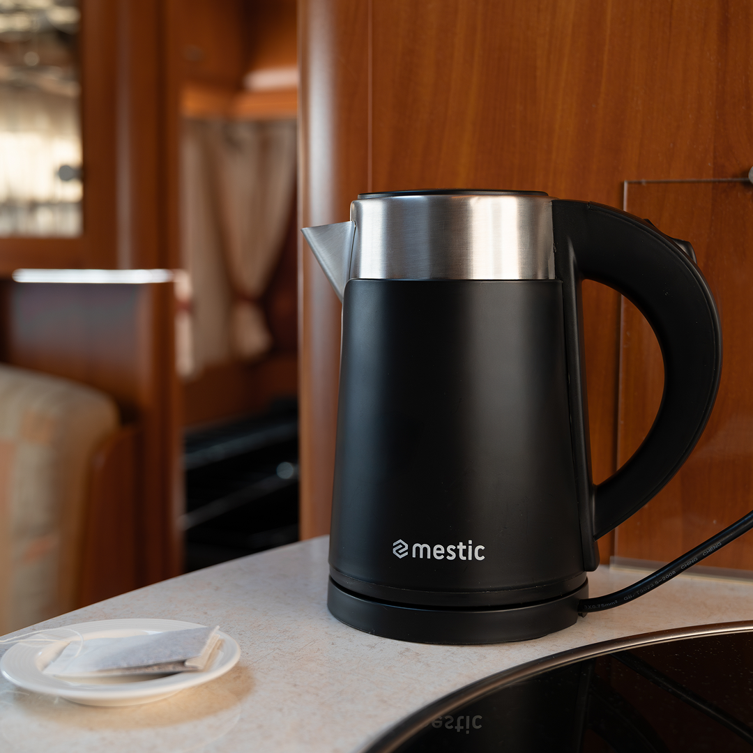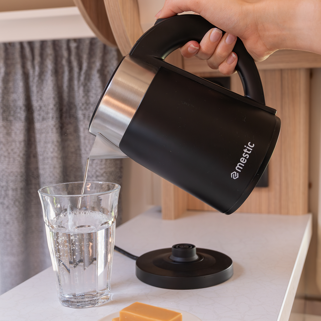 Most campsites offer the option of taking power at your camping spot, but the number of amps is often limited. Thanks to its low power of 800 W, the Mestic kettle MWC-60 is the ideal camping kettle. The double-walled design keeps the outside cool, while the water inside reaches optimal temperature. With a compact size, you can easily take this lightweight kettle with you when traveling, without taking up much space.