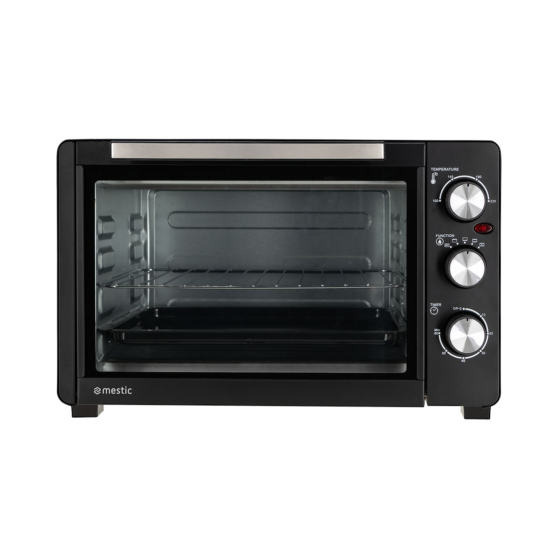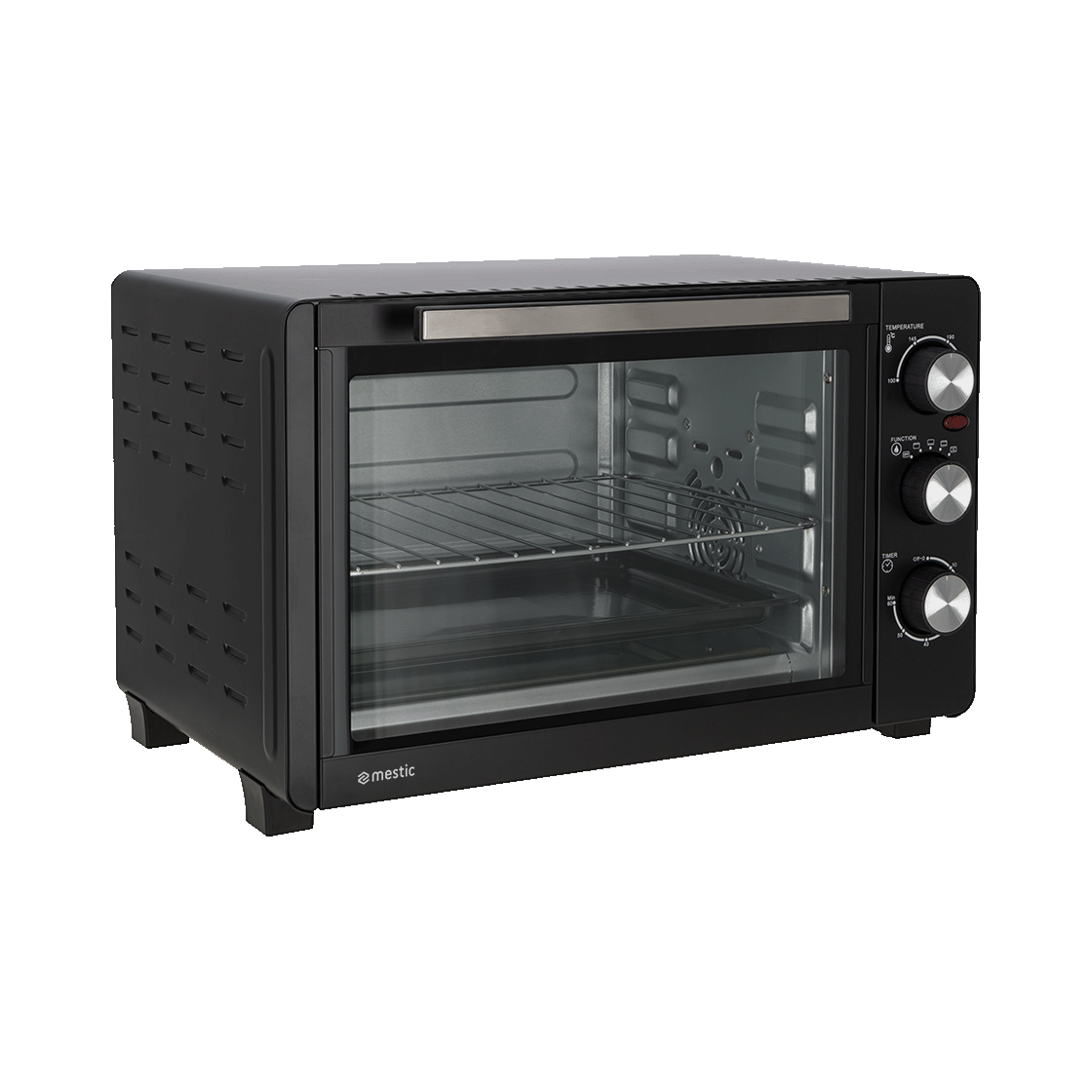 Mestic's compact convection oven is guaranteed to ensure lots of fun on holiday. The oven has four heating modes: top heating, bottom heating, top and bottom heating and convection heating. As the camping oven has fans that distribute hot air evenly, your bread or pizza crust is nice and crispy on all sides. The door of the convection oven is insulated and double-glazed. As a result, the heat is not lost. The temperature can be easily adjusted to a maximum of 230 °C using the rotary knob. Thanks to the timer signal, you never lose track of time!