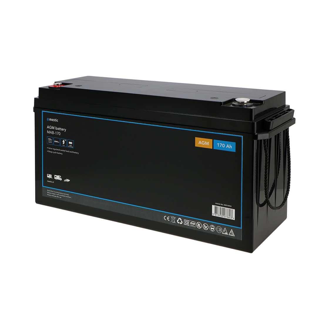 Are you looking for a multifunctional battery for charging your electrical appliances or for use as an on-board battery? Then the Mestic AGM battery MAB-170 is a good choice. AGM battery’s are ideally suited for applications that require a high discharge current.