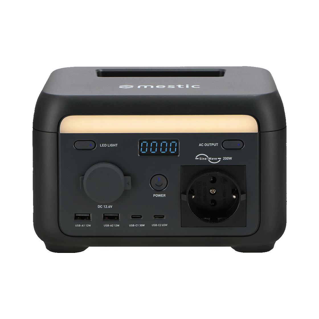 The Mestic Power Station MPS-200 is your best friend during a camping vacation in the wilderness. With the device you can easily charge various electrical devices. Combine it with the foldable solar panel and you'll benefit from self-generated green power wherever you are.