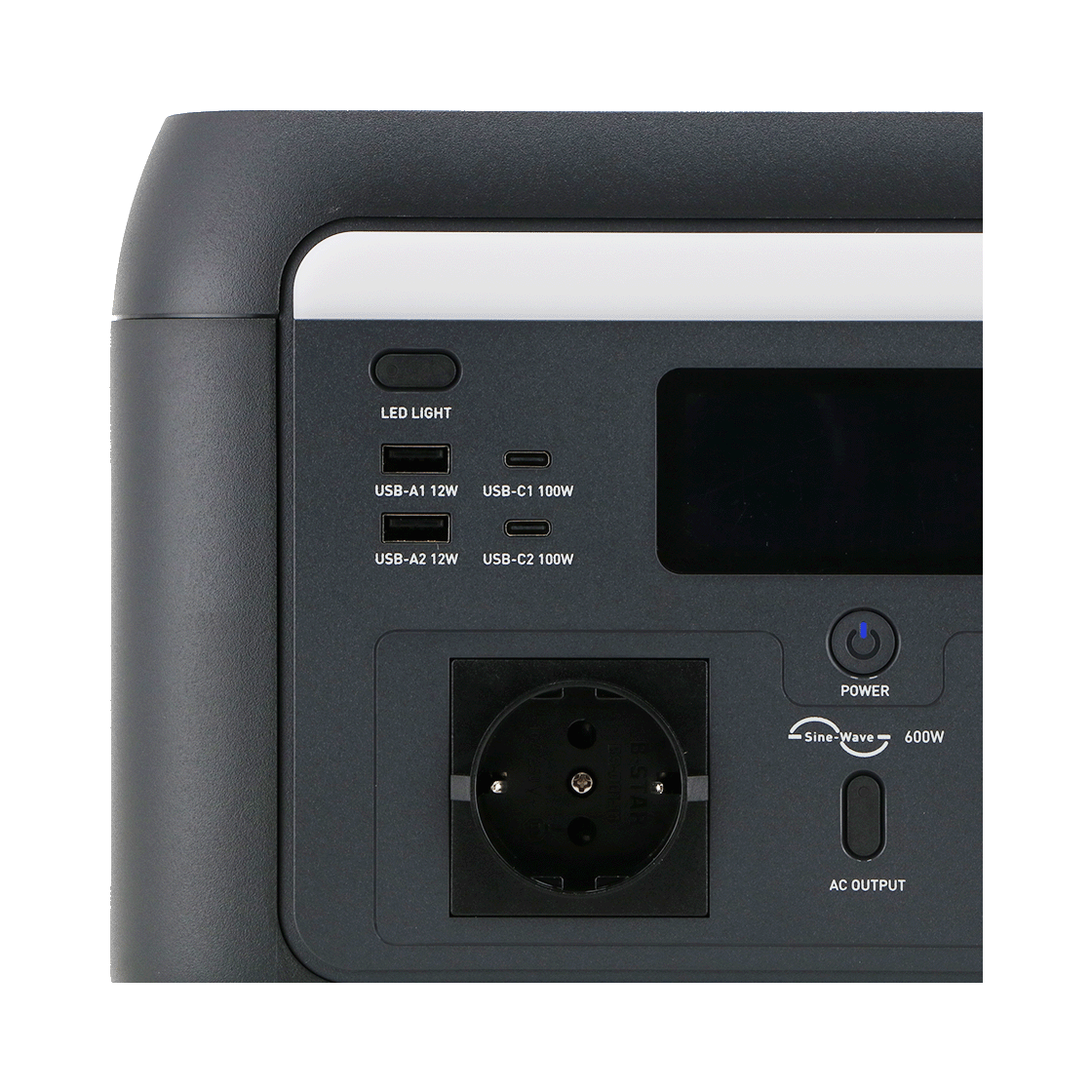 Are you a true outdoor adventurer and do you like to go off-grid camping? Then a power station is an indispensable item in your camping equipment. With the Power Station MPS-600, you can power various camping devices thanks to its 600W output. The power station features several output connectors (AC/DC/USB-A/USB-C) allowing you to charge all kinds of devices. Combine the power station with the foldable solar panel and use your self-generated green electricity to charge the power station. This way, you are always supplied with power, wherever you are.